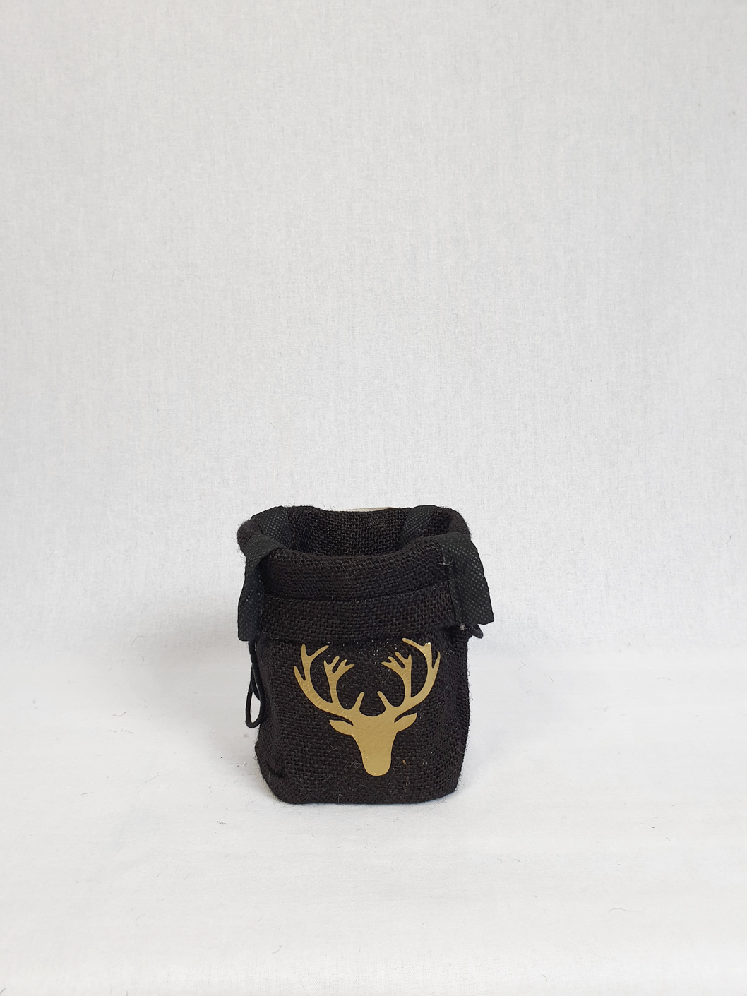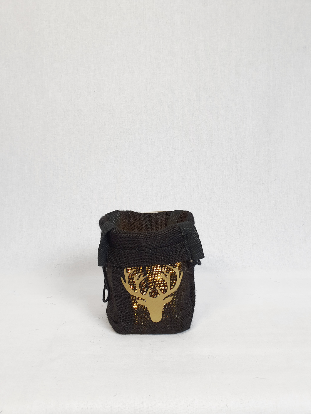 Jute Zakje Zwart Hert is gemaakt van 100% Jute. Het zakje is 18 cm hoog, 10 cm breed en 7 cm diep. Doordat je de rand omslaat creëer je een speels effect. Superleuk om te gebruiken met Kerst. Doe er een waxinelichtje in, waxinelichtje op batterij of koperdraad verlichting op batterij. Tevens is het ook geschikt voor een plantje, kruidenplantje of voor je pollepels in de keuken bijvoorbeeld. Gebruik bij een plantje altijd een potje in het zakje om doorlekken te voorkomen.